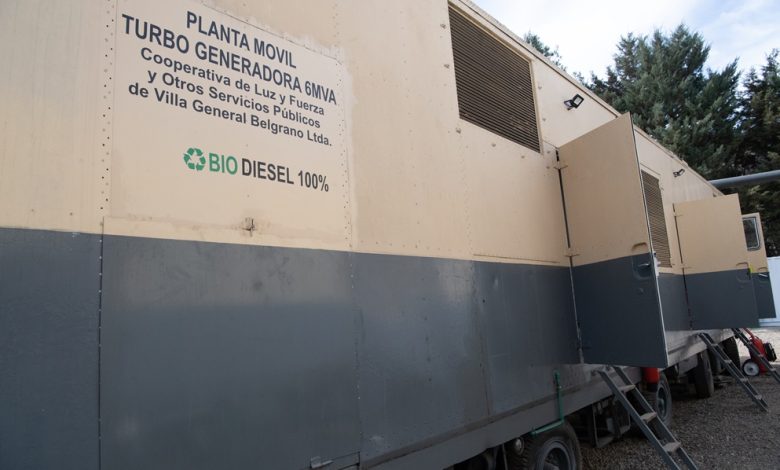 En el predio de la Cooperativa de Luz y Fuerza de Villa General Belgrano se encendió una turbina que utiliza biodiesel para generar cuatro megavatios de energía eléctrica y servir así, en caso de emergencia a la principal ciudad del Valle de Calamuchita que, en los últimos cinco años duplicó la demanda de energía, detalló Andrés Ramos, presidente de la Cooperativa de Luz y Fuerza de Villa General Belgrano.