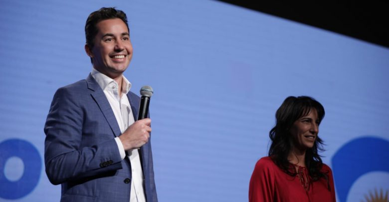 Manuel Calvo estuvo acompañado por la candidata a la Legislatura provincial, Natalia de la Sota.