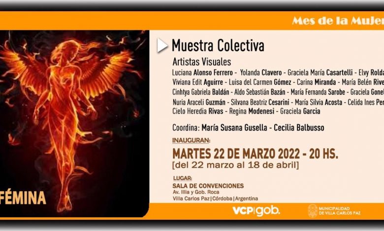 Este martes 22 de marzo se inaugura en la Sala de Convenciones (Av. Illia y Gobernador Roca) una muestra de arte colectiva denominada “Fémina” coordinada por María Susana Gusella y Cecilia Balbusso.