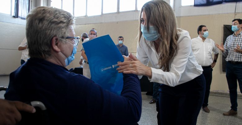 El acto de entrega se realizó en la escuela Polo Godoy Rojo. Allí estuvieron la ministra de Promoción del Empleo y la Economía Familiar, Laura Jure; y la intendenta de Estación Juárez Celman, Myrian Prunotto, entre otras autoridades provinciales y municipales.
